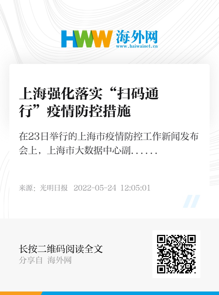 在23日举行的上海市疫情防控工作新闻发布会上,上海市大数据中心副主任朱俊伟对上海市强化落实“扫码通行”疫情防控措施进行了通报。