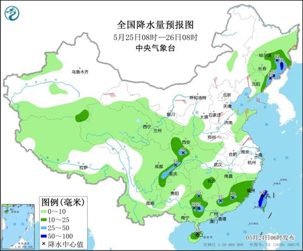今明天,南方降水有所减弱,北方的东北、华北、黄淮等地雨水增多,并伴有强对流天气。具体来看,中央气象台预计,今天,黑龙江东南部、吉林中部、辽宁大部、江南中部和南部、广西、广东西部、海南岛、台湾岛等地的部分地区有中到大雨,其中广西西部和东部、广东西南部、湖南南部、江西东南部、福建西部、海南岛西北部、台湾岛西北部等地局地暴雨(50~90毫米)。