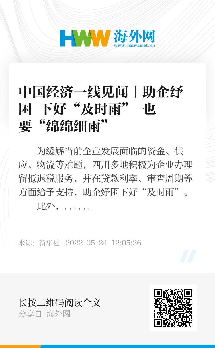 为缓解当前企业发展面临的资金、供应、物流等难题,四川多地积极为企业办理留抵退税服务,并在贷款利率、审查周期等方面给予支持,助企纾困下好“及时雨”。