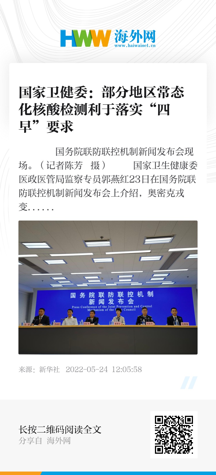 郭燕红表示,不要求所有的城市都要建立步行15分钟的核酸采样圈,主要是集中在输入风险较高的省会城市以及人口千万级的城市。在频次上也并非要求所有人群都要48小时检测一次,具体的检测频次各地可根据疫情的发生发展情况和防控需要因时因势确定。(记者宋晨、李恒)
