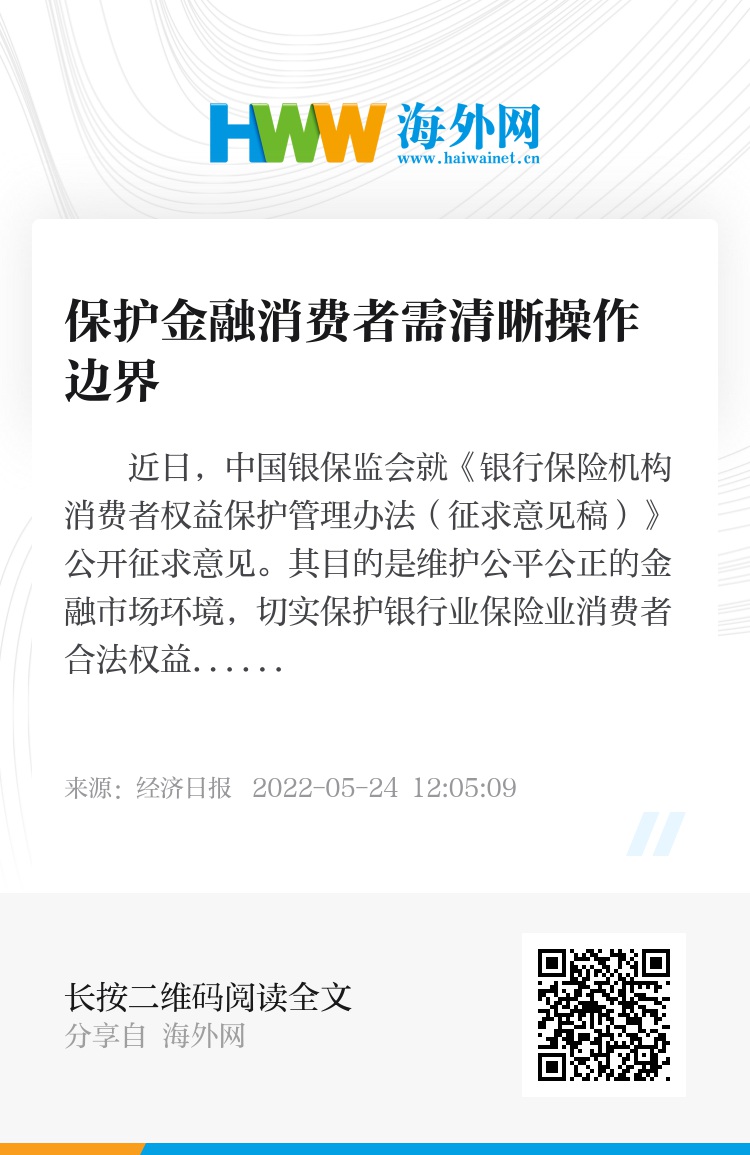 近日,中国银保监会就《银行保险机构消费者权益保护管理办法(征求意见稿)》公开征求意见。其目的是维护公平公正的金融市场环境,切实保护银行业保险业消费者合法权益,促进行业高质量稳健发展。