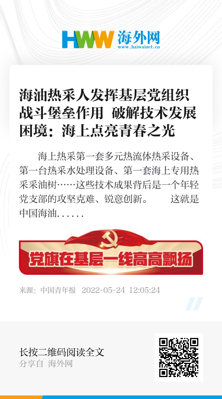 海上热采第一套多元热流体热采设备、第一台热采水处理设备、第一套海上专用热采采油树……这些技术成果背后是一个年轻党支部的攻坚克难、锐意创新。