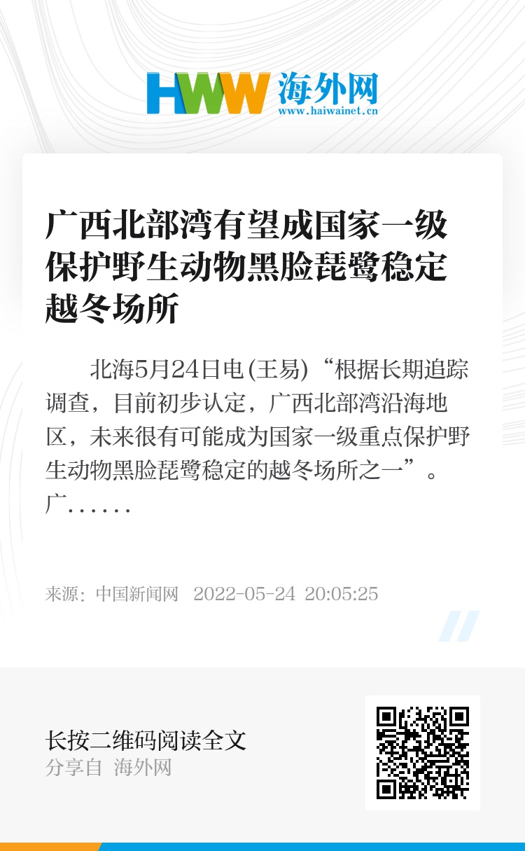 余桂东和同事程志营、陆西灵最近在广西钦州、北海沿海地区完成了阶段性鸟类资源调查,结合1995年至今黑脸琵鹭在北部湾地区被发现并记录下的相关数据得出上述结论。余桂东表示,对钦州、北海等地水鸟分布情况长期关注的柳州市观鸟协会资深会员孙家杰,在调查过程中提供了相关观察资料。