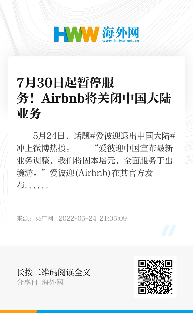 5月24日,话题#爱彼迎退出中国大陆#冲上微博热搜。