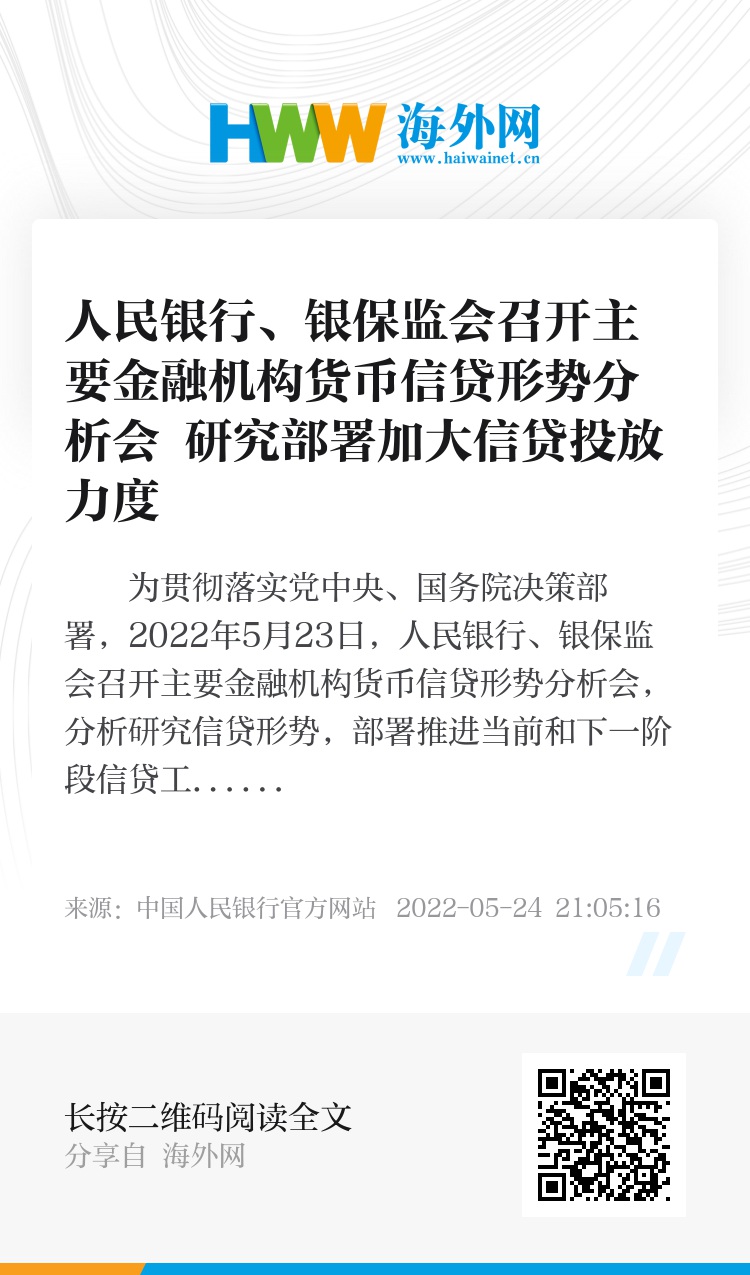 为贯彻落实党中央、国务院决策部署,2022年5月23日,人民银行、银保监会召开主要金融机构货币信贷形势分析会,分析研究信贷形势,部署推进当前和下一阶段信贷工作。人民银行行长、国务院金融委办公室主任易纲,人民银行副行长潘功胜、银保监会副主席周亮出席会议并讲话,人民银行副行长刘国强主持会议。24家主要金融机构及人民银行、银保监会相关部门和分支机构的主要负责同志参加会议。国家开发银行、中国农业银行、中信银行就保持信贷适度增长的主要做法作了交流发言。