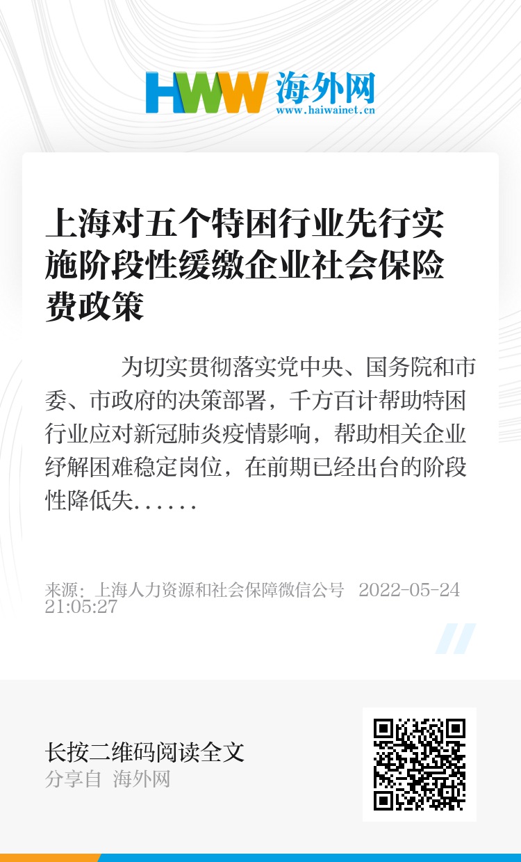 为切实贯彻落实党中央、国务院和市委、市政府的决策部署,千方百计帮助特困行业应对新冠肺炎疫情影响,帮助相关企业纾解困难稳定岗位,在前期已经出台的阶段性降低失业和工伤保险费率政策的基础上,上海市人力资源和社会保障局、上海市医疗保障局、上海市财政局、国家税务总局上海市税务局等四部门联合出台了《关于本市特困行业阶段性实施缓缴企业社会保险费政策的通知》。