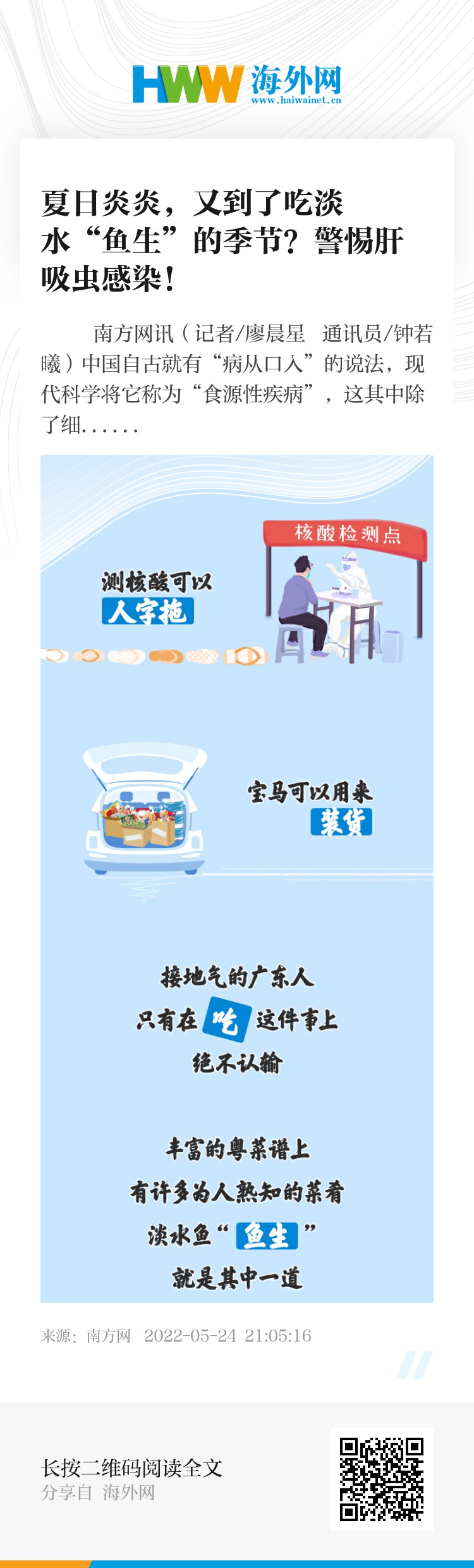 南方网讯(记者/廖晨星 通讯员/钟若曦)中国自古就有“病从口入”的说法,现代科学将它称为“食源性疾病”,这其中除了细菌病毒引起的跑肚拉稀,寄生虫病也是不容忽视的一类。夏天到了,爽口的淡水“鱼生”开始频繁出现在广东食客的餐桌上。