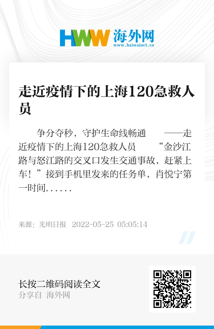 “金沙江路与怒江路的交叉口发生交通事故,赶紧上车!”接到手机里发来的任务单,肖悦宁第一时间告诉同事顾仁杰和张威。记者低头看了下时间,此刻是20时20分。疫情之下的上海,救护车疾驰在空旷的街道上,没有了平时急促的警报声,只有蓝色的灯光在不停地闪烁……