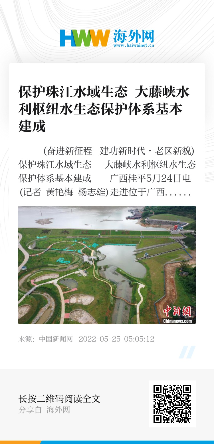 (奋进新征程 建功新时代·老区新貌)保护珠江水域生态 大藤峡水利枢纽水生态保护体系基本建成