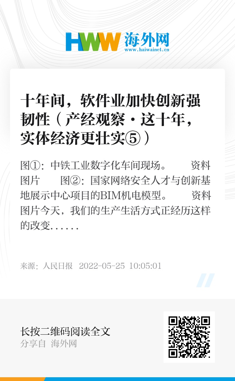 这10年,软件业迎来发展“黄金期”。2019年,国家软件发展战略发布实施,软件产业高质量发展上升为国家战略。2020年,《新时期促进集成电路产业和软件产业高质量发展的若干政策》发布,提出要聚焦基础软件、工业软件等的关键核心技术研发,不断探索构建社会主义市场经济条件下关键核心技术攻关新型举国体制。达梦数据库实现在电网、金融等多领域扎根,中望龙腾、浙江中控等工业软件先后在科创板上市……集中优势力量推动一个个核心软件相继取得突破、获得市场青睐。