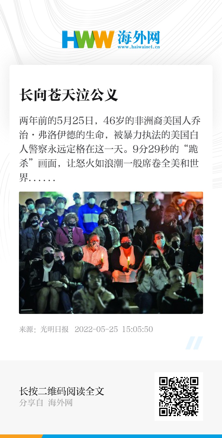 两年前的5月25日,46岁的非洲裔美国人乔治·弗洛伊德的生命,被暴力执法的美国白人警察永远定格在这一天。
