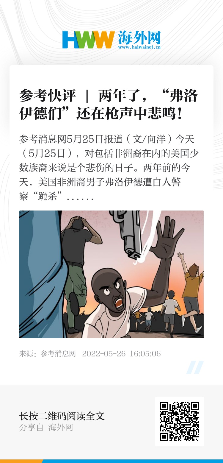 今天(5月25日),对包括非洲裔在内的美国少数族裔来说是个悲伤的日子。两年前的今天,美国非洲裔男子弗洛伊德遭白人警察“跪杀”,在最后一刻发出“我不能呼吸”的悲鸣。按照美国总统拜登的说法,弗洛伊德之死让全世界看到系统性种族主义是“美国灵魂上的污点”。