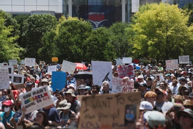 2022年5月27日,数千人在休斯顿市中心抗议全国步枪协会的年度大会 图源:外媒
