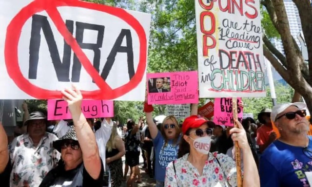 美国得克萨斯州5月24日发生的恶性校园枪击案夺走21条无辜性命。就在受害家庭仍沉浸在悲痛之时,美国年度最大规模的“枪展”——美国全国步枪协会(NRA)年度大会及产品展览会27日在得州如期举行。美国媒体慨叹,自桑迪胡克小学惨剧发生以来,美国已走过“十年控枪失败史”,得州最新发生的校园枪击案对国家控枪议程恐怕也不会产生多少影响。