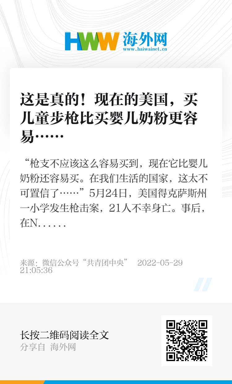 5月24日,美国得州一所小学发生大规模枪击案,致19名小学生和2名成人死亡,震惊全美。