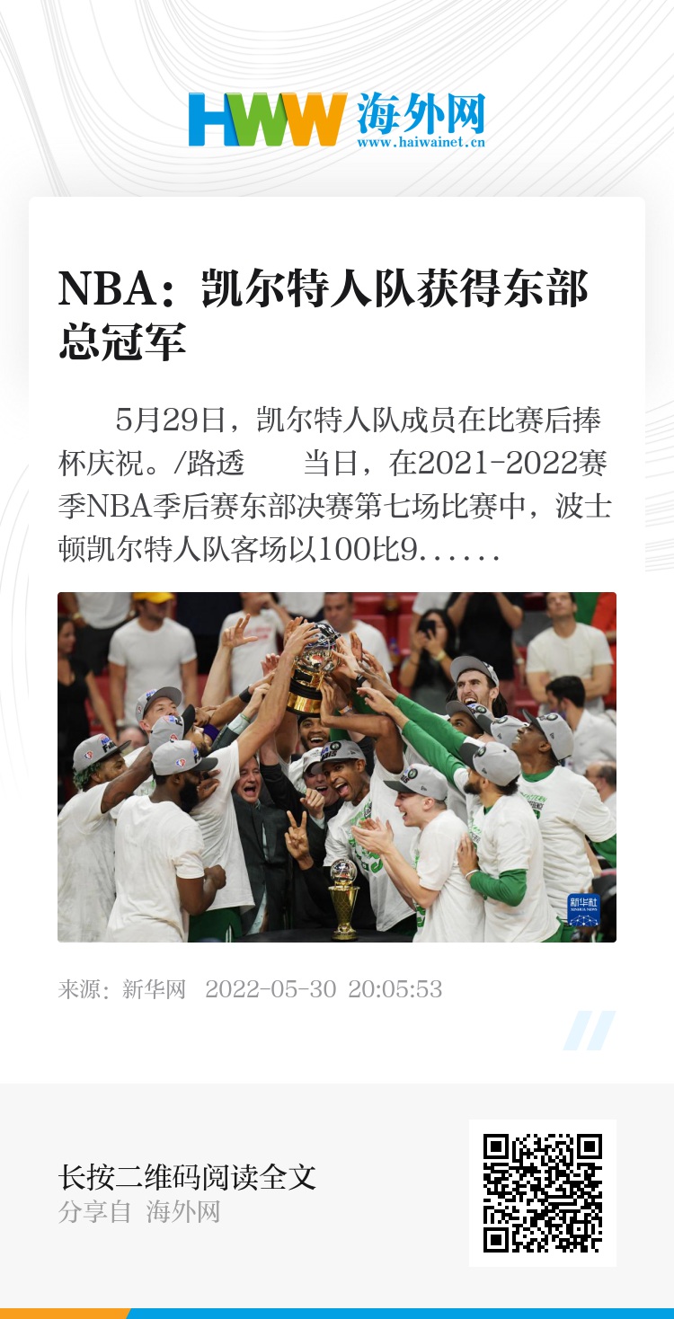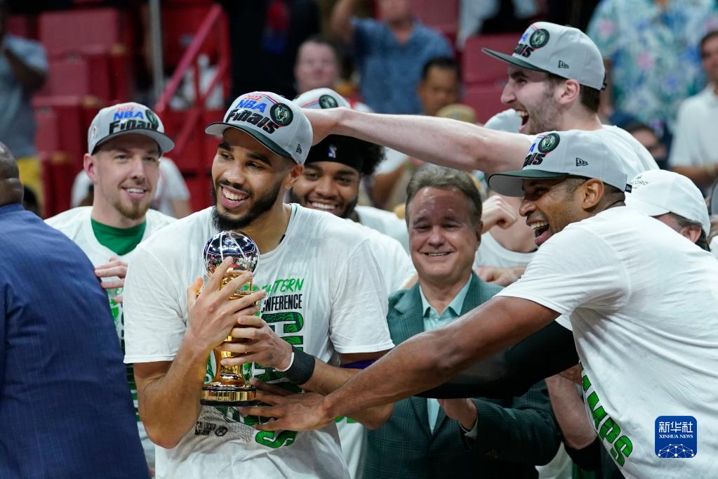 当日,在2021-2022赛季NBA季后赛东部决赛第七场比赛中,波士顿凯尔特人队客场以100比96战胜迈阿密热火队,以总比分4比3获得东部冠军,晋级总决赛。