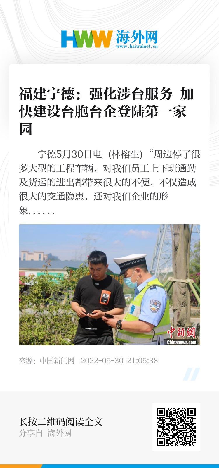 据悉,宁德市台港澳办近期在福建联德企业有限公司调研时了解到,蕉城区漳湾镇闽海路与疏港路口路段为联德企业员工上下班通勤以及成品出货进出的主要通道,违规停放车辆存在安全隐患。