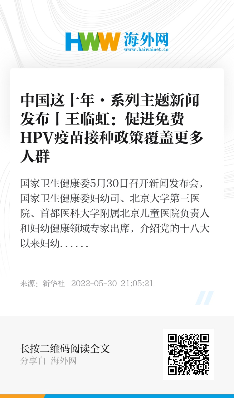 中华预防医学会妇女保健分会主任委员、中国疾控中心慢性病首席专家王临虹介绍,近年来,国家一直在积极加强HPV疫苗接种的科学宣传,推动HPV疫苗的试点工作。按照整体推进和重点突破的工作思路,推动广东、海南和福建三省先后启动实施了全省的适龄女孩免费接种国产二价疫苗的工作,把这项工作纳入了2022年省委省政府为民办实事的项目。