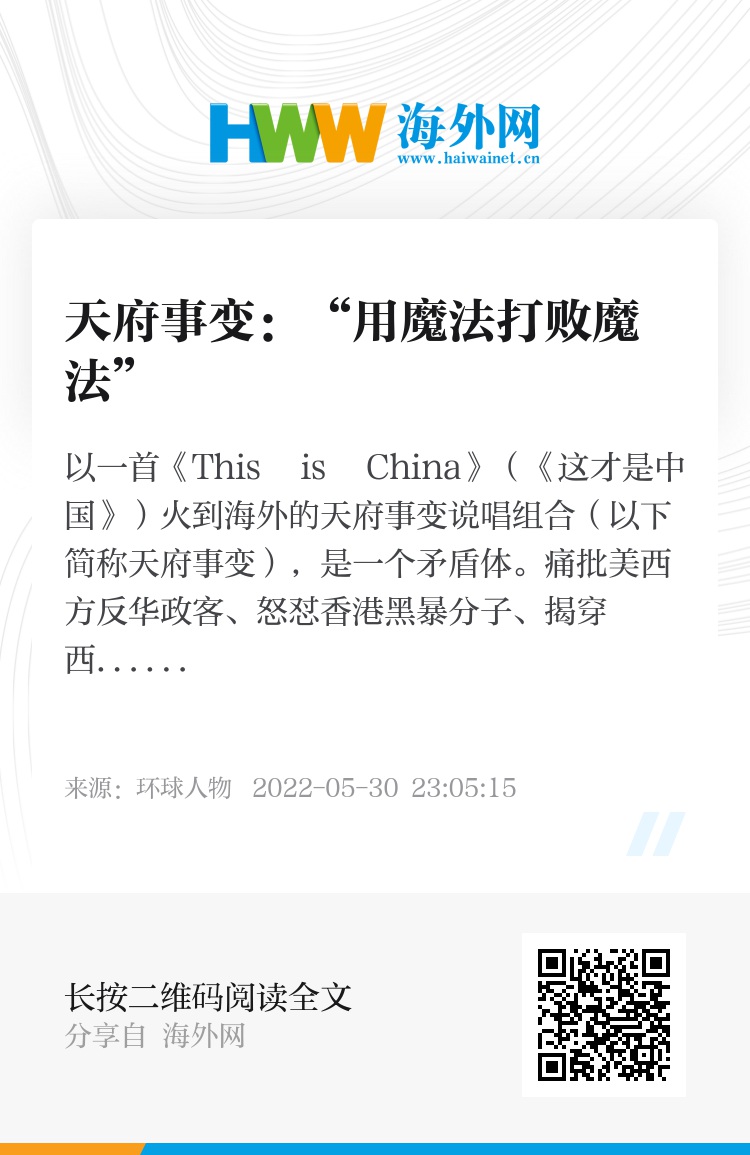聊到这里,记者的探寻有了答案:天府事变是叛逆的,也是平和的,但决不是分裂的。那些带着傲慢与偏见、无休止造谣与抹黑中国者,才是。