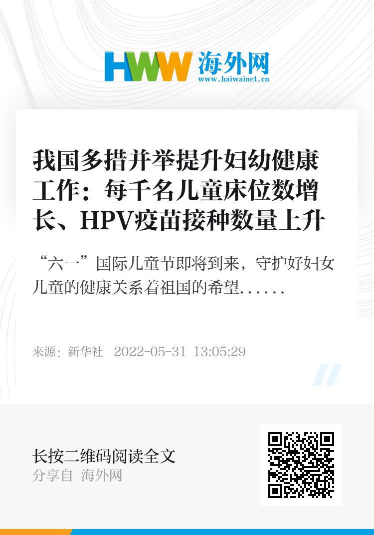 每千名儿童儿科床位数保持增长、逐步解决HPV疫苗供应不足问题、妇幼健康核心指标取得历史性成就、儿童健康管理率保持90%以上……国家卫生健康委30日举行新闻发布会,介绍党的十八大以来我国妇幼健康工作进展成效。