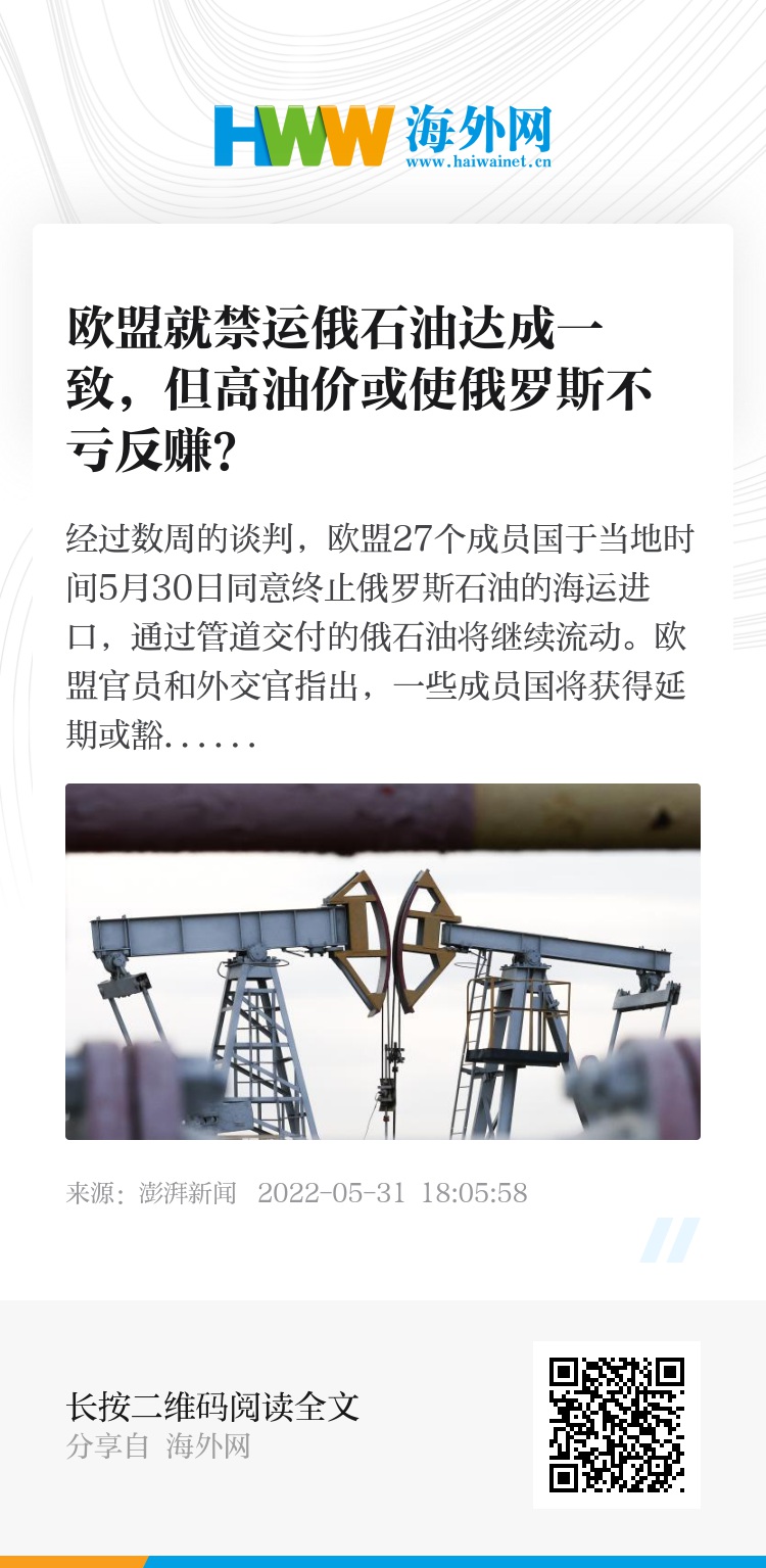 经过数周的谈判,欧盟27个成员国于当地时间5月30日同意终止俄罗斯石油的海运进口,通过管道交付的俄石油将继续流动。欧盟官员和外交官指出,一些成员国将获得延期或豁免权。