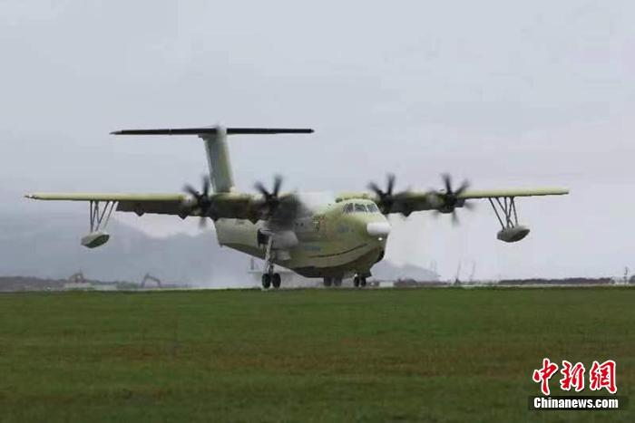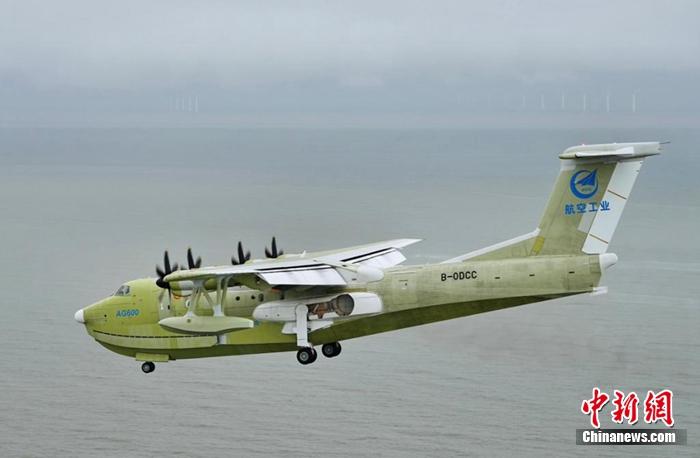 鲲龙AG600全状态新构型灭火机在广东珠海首飞成功。戴海滨 摄
