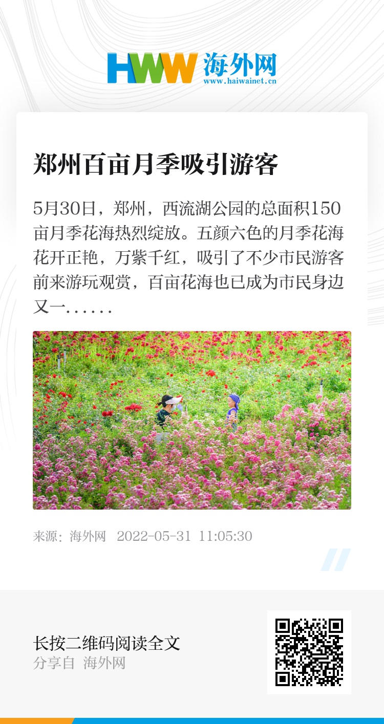 5月30日,郑州,西流湖公园的总面积150亩月季花海热烈绽放。五颜六色的月季花海花开正艳,万紫千红,吸引了不少市民游客前来游玩观赏,百亩花海也已成为市民身边又一处网红打卡地。图片来源:刘帅冶/视觉中国