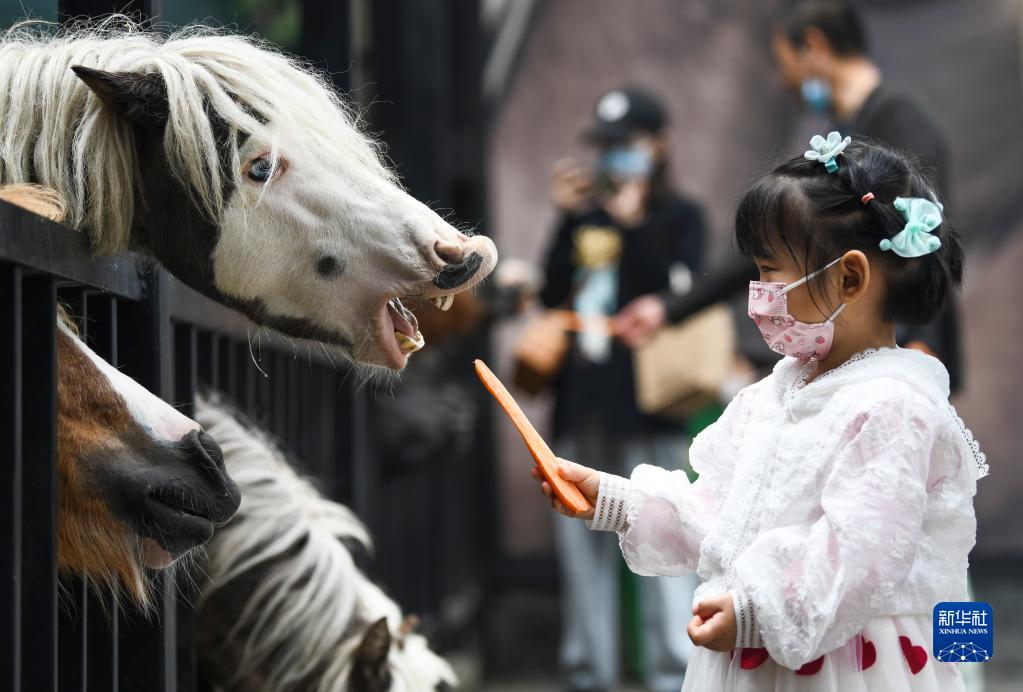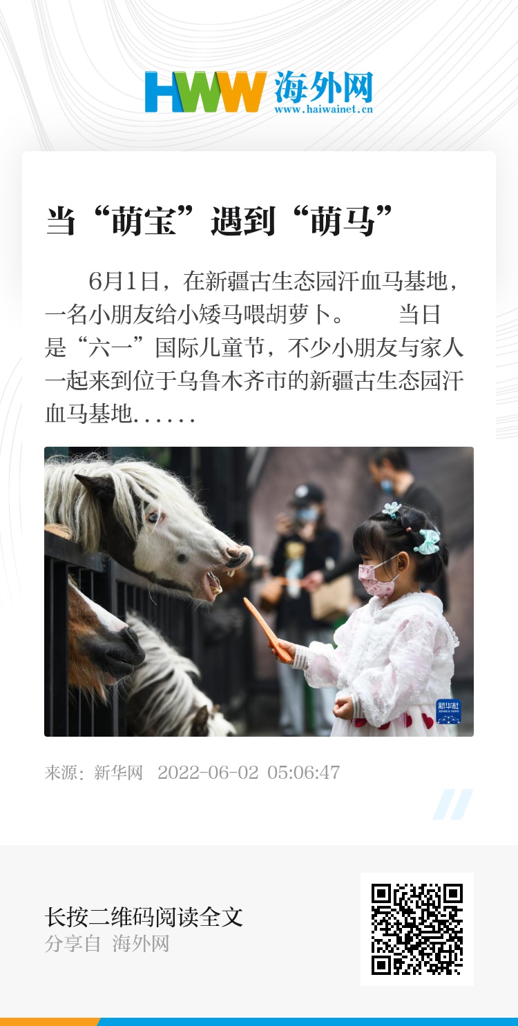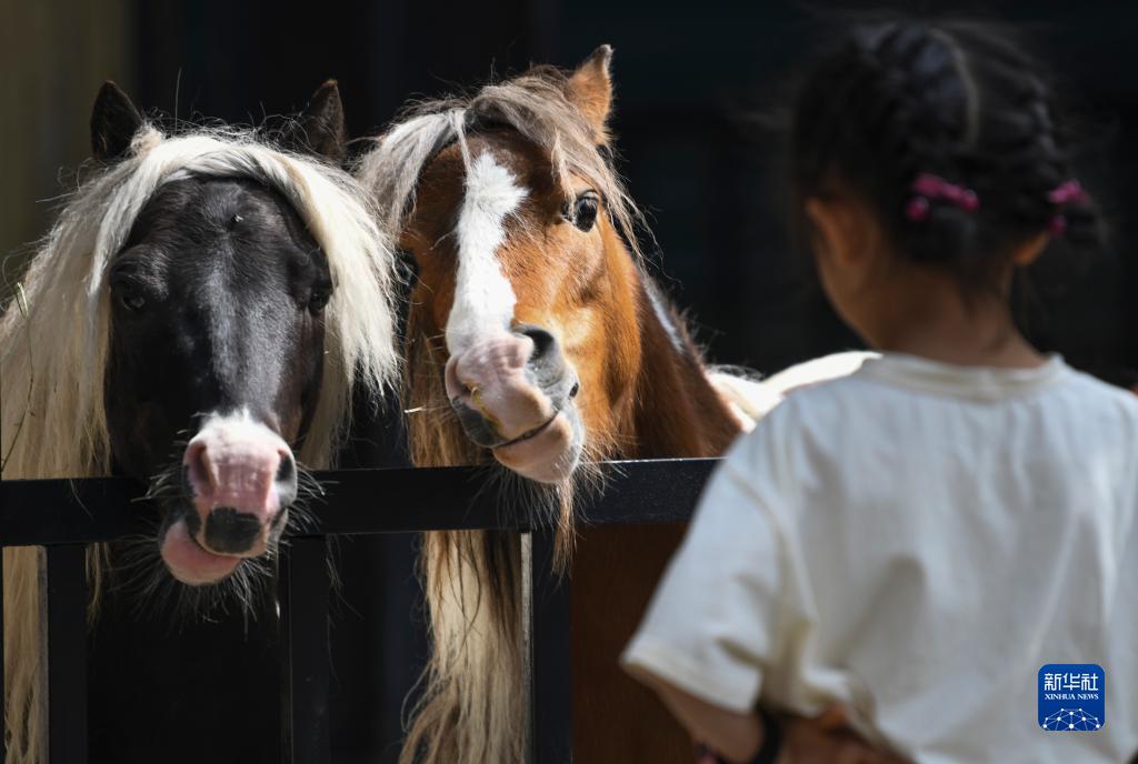 当日是“六一”国际儿童节,不少小朋友与家人一起来到位于乌鲁木齐市的新疆古生态园汗血马基地,与“生活”在这里的汗血马和小矮马近距离接触,感受别样乐趣。