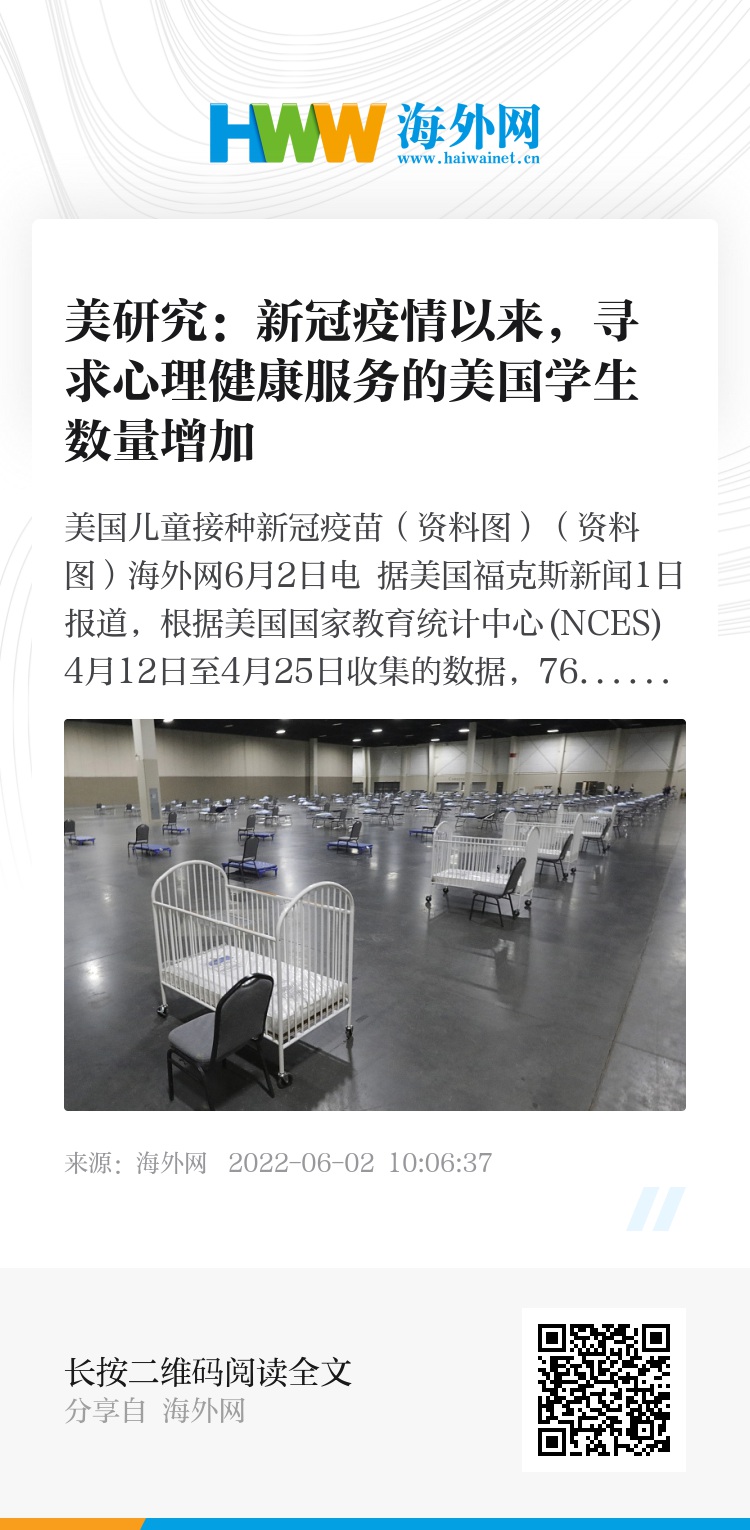 海外网6月2日电 据美国福克斯新闻1日报道,根据美国国家教育统计中心(NCES) 4月12日至4月25日收集的数据,76%的公立学校报告称,自新冠疫情暴发以来,寻求心理服务的学生数量增加。
