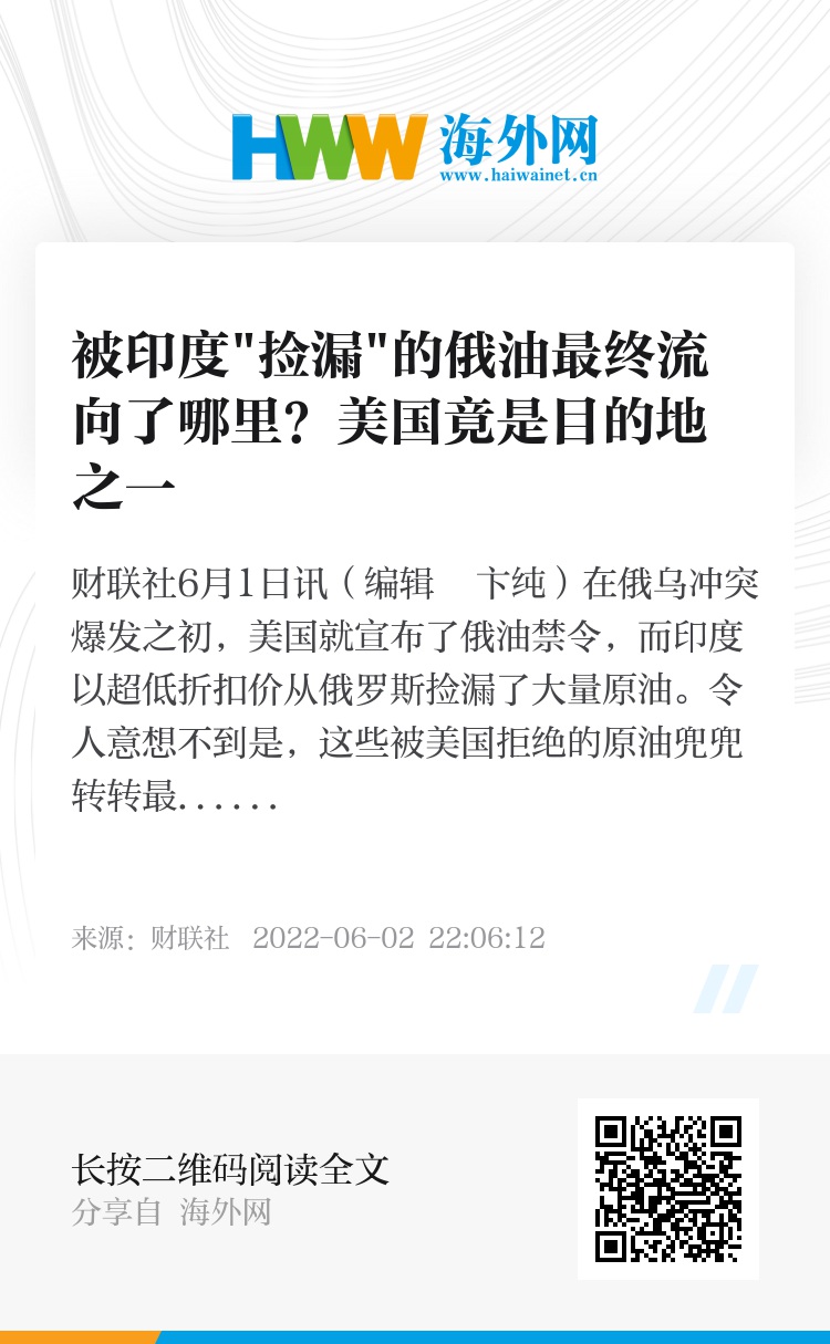 财联社6月1日讯(编辑 卞纯)在俄乌冲突爆发之初,美国就宣布了俄油禁令,而印度以超低折扣价从俄罗斯捡漏了大量原油。令人意想不到是,这些被美国拒绝的原油兜兜转转最终还是流向了美国市场!