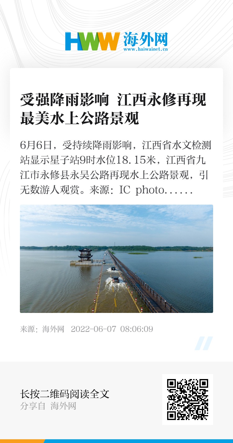 32439531,.受强降雨影响 江西永修再现最美水上公路景观,.2022-06-07 08:39:09,.204428,.张青津、庄鹏泽