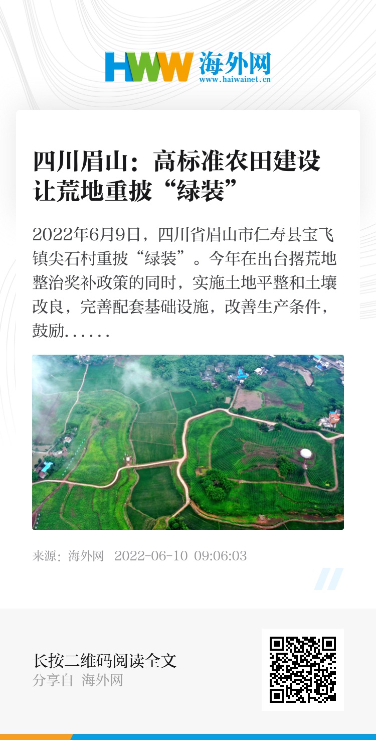 2022年6月9日,四川省眉山市仁寿县宝飞镇尖石村重披“绿装”。今年在出台撂荒地整治奖补政策的同时,实施土地平整和土壤改良,完善配套基础设施,改善生产条件,鼓励种植大户、农民专业合作社等新型经营主体集中流转土地,实行规模化经营、集约化发展,让昔日撂荒地重披“绿装”。图片来源:视觉中国