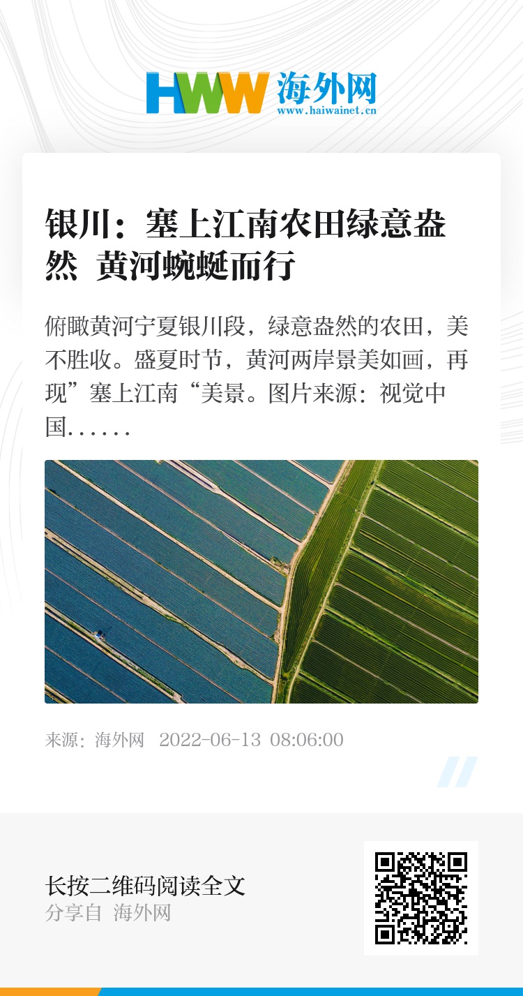 32442663,.银川:塞上江南农田绿意盎然 黄河蜿蜒而行,.2022-06-13 08:00:00,.204372,.刘素素、夏丽娟