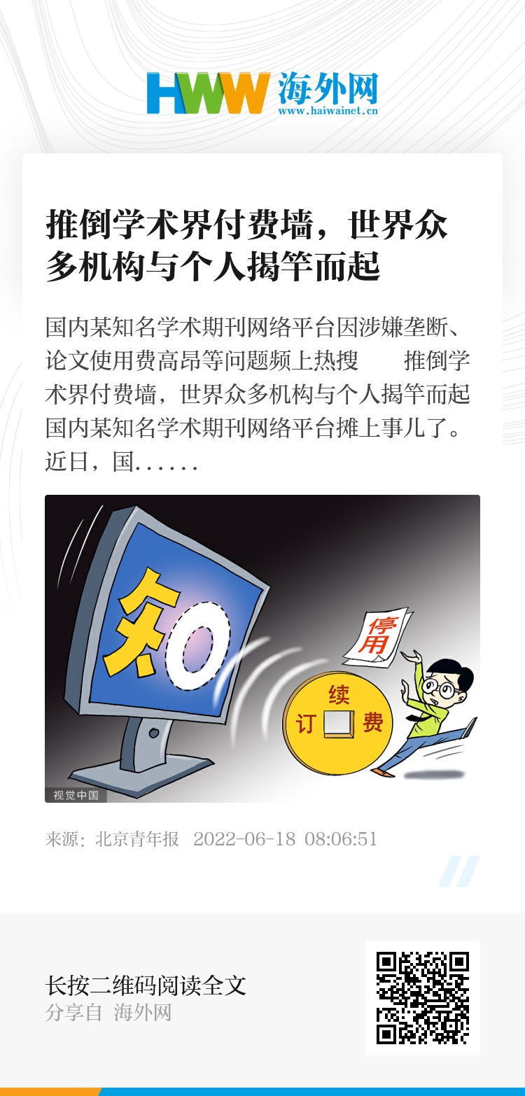 涉嫌学术信息垄断、数据库使用收费高昂……其实,诸如此类的现象在国外也有过之而无不及——巨头出版公司向研究机构大额收费、用付费墙挡住想下载单篇论文的个人,是一种普遍的运营模式。