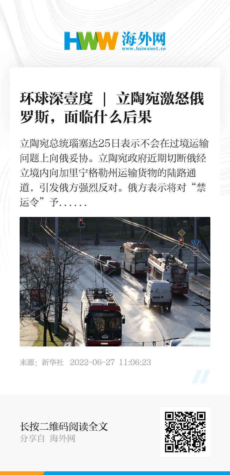 立陶宛总统瑙塞达25日表示不会在过境运输问题上向俄妥协。立陶宛政府近期切断俄经立境内向加里宁格勒州运输货物的陆路通道,引发俄方强烈反对。俄方表示将对“禁运令”予以回击,让立陶宛“感受痛苦”。