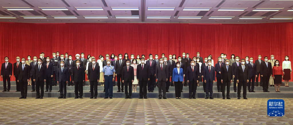 特别行政区行政长官李家超的陪同下,会见香港特别行政区新任行政、立法、司法机关负责人。新华社记者 鞠鹏 摄
