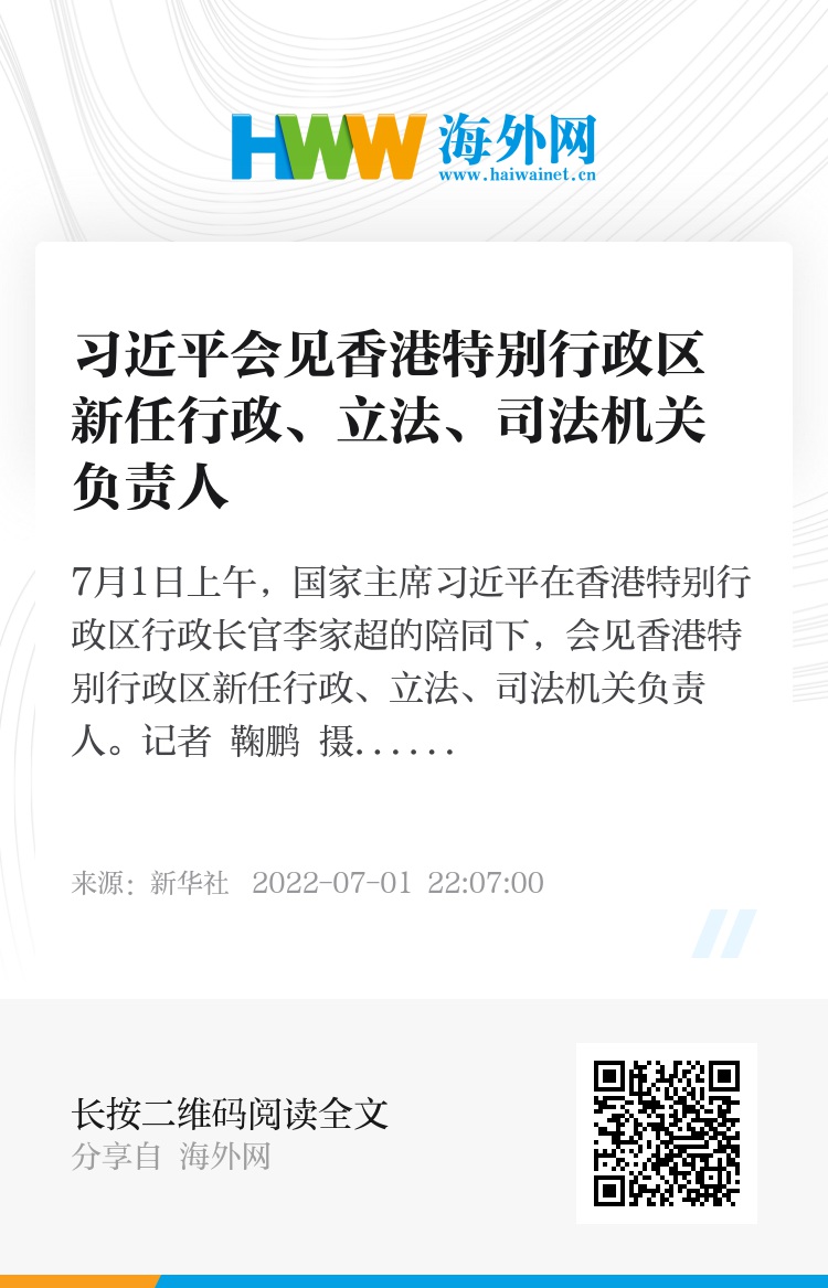 习近平会见香港特别行政区新任行政、立法、司法机关负责人