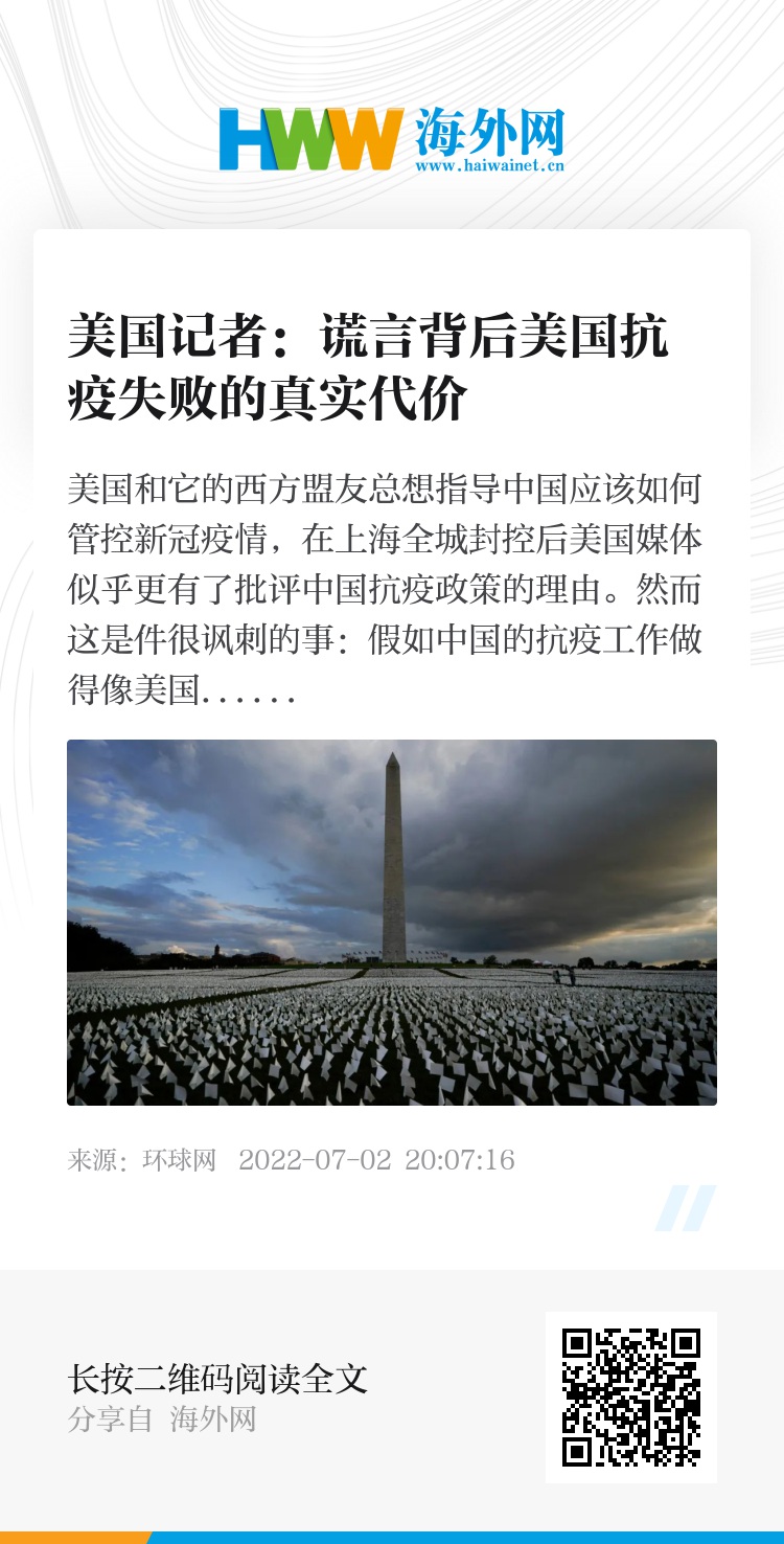 中国严肃对待人的生命。尽管人均收入只有美国的17.3%,但中国人的平均寿命预期(77.9年)已经超过了美国(76.6年)。美国人的预期寿命在2020至2021年间下降了2.26年。美国媒体鼓吹中国放弃动态清零的抗疫策略,这等于是在鼓吹大规模种族主义谋杀。也许地球上最暴力的国家发出这样的声音并不令人惊讶。