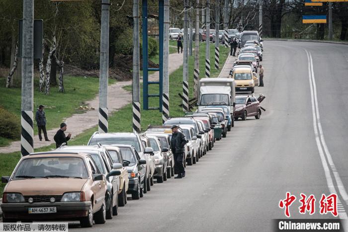 资料图:当地时间4月21日,里乌波尔居民逃离家园。