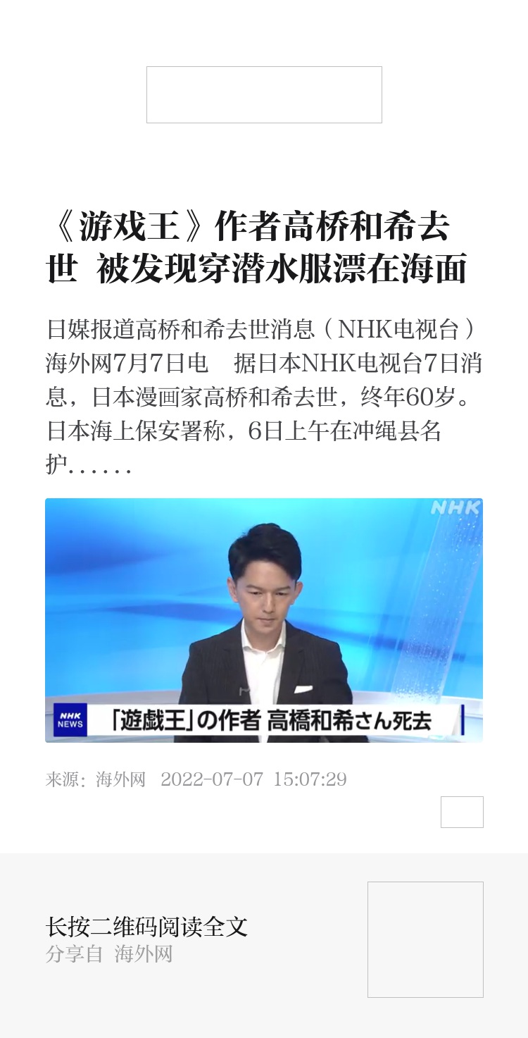海外网7月7日电 据日本NHK电视台7日消息,日本漫画家高桥和希去世,终年60岁。