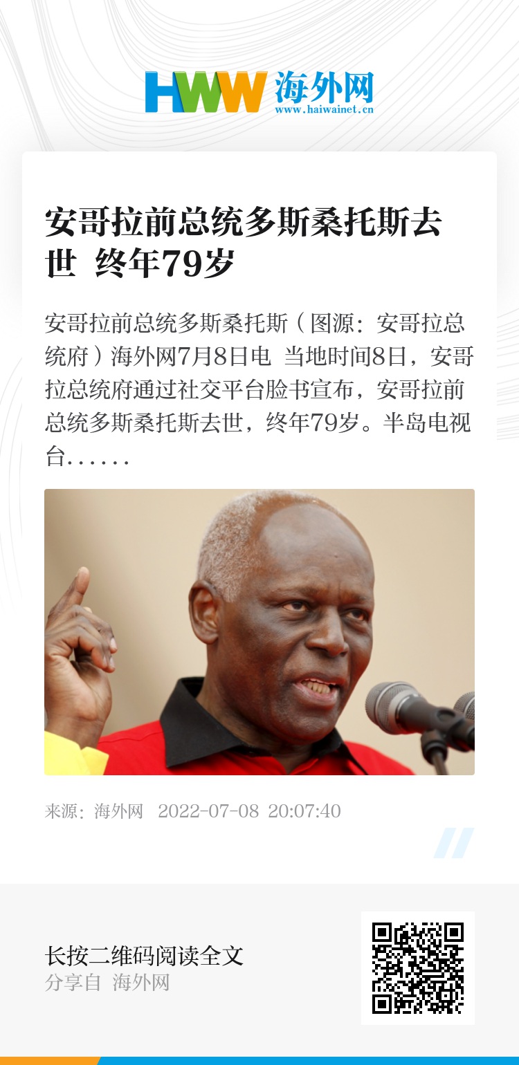 半岛电视台称,多斯桑托斯担任总统时间长达38年。安哥拉是非洲第二大石油生产国。(海外网 汪晓宇)