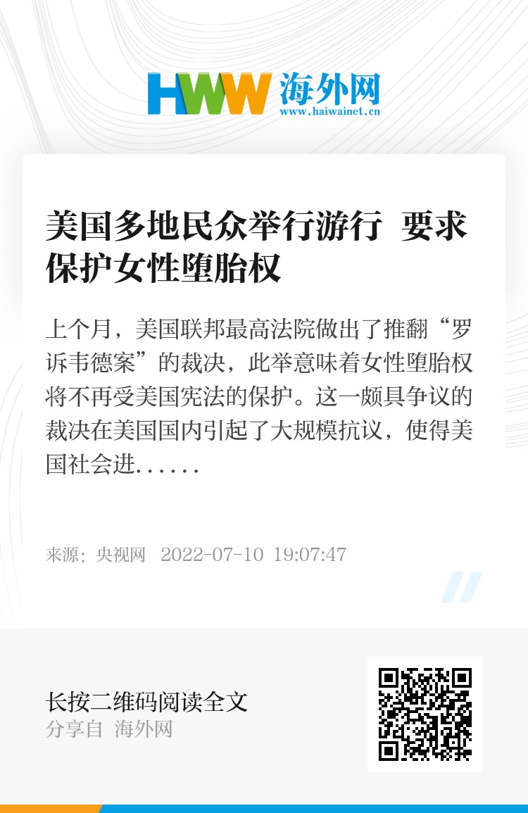 上个月,美国联邦最高法院做出了推翻“罗诉韦德案”的裁决,此举意味着女性堕胎权将不再受美国宪法的保护。这一颇具争议的裁决在美国国内引起了大规模抗议,使得美国社会进一步撕裂。
