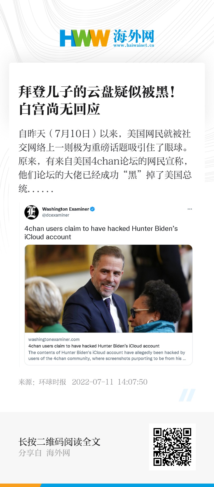 自昨天(7月10日)以来,美国网民就被社交网络上一则极为重磅话题吸引住了眼球。原来,有来自美国4chan论坛的网民宣称,他们论坛的大佬已经成功“黑”掉了美国总统拜登的小儿子亨特的苹果手机云盘,并在里面看到了大量亨特的“黑料”。