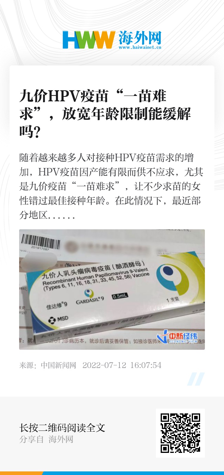 随着越来越多人对接种HPV疫苗需求的增加,HPV疫苗因产能有限而供不应求,尤其是九价疫苗“一苗难求”,让不少求苗的女性错过最佳接种年龄。