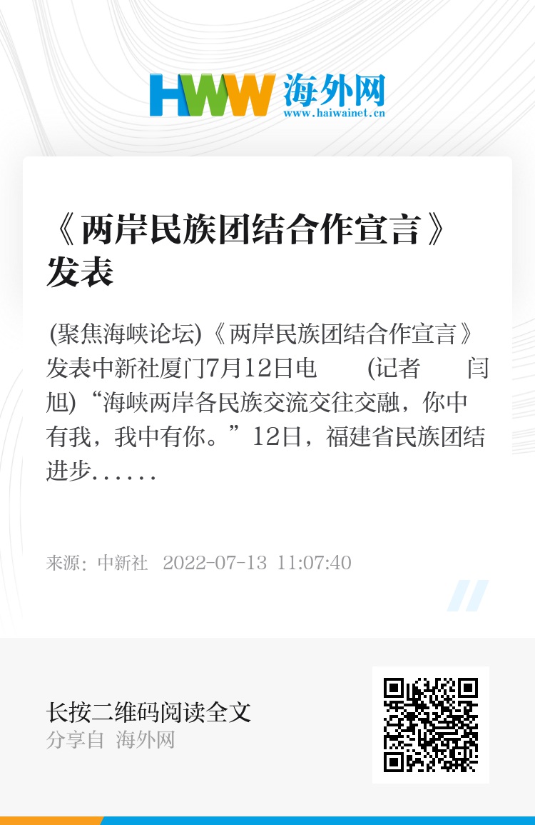 (聚焦海峡论坛)《两岸民族团结合作宣言》发表