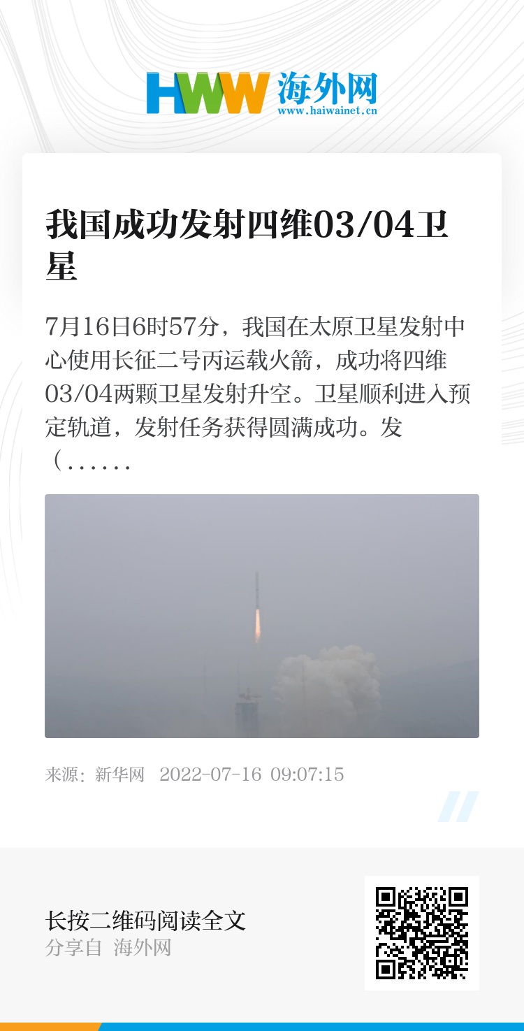 32458060,.我国成功发射四维03/04卫星,.2022-07-16 09:58:15,.103712,.夏丽娟