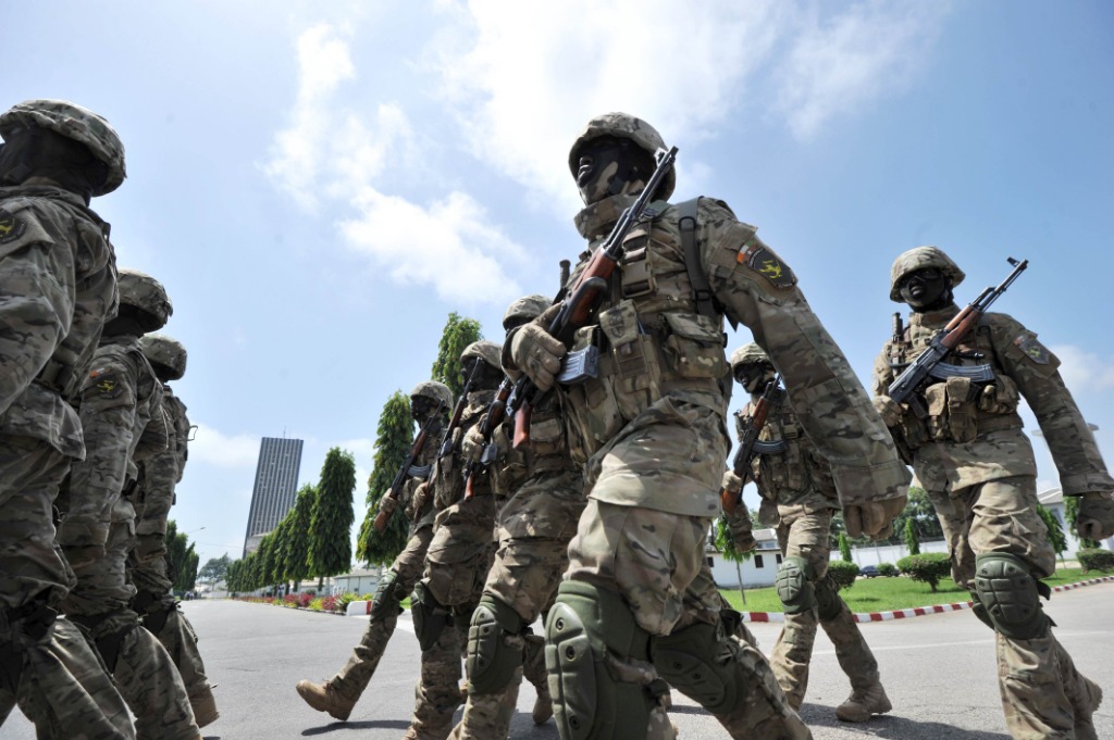 2013年5月2日,在科特迪瓦经济首都阿比让,即将开赴马里的科特迪瓦士兵做最后准备。新华社/法新