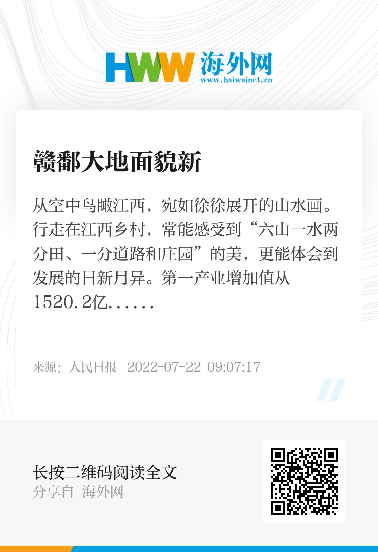从空中鸟瞰江西,宛如徐徐展开的山水画。行走在江西乡村,常能感受到“六山一水两分田、一分道路和庄园”的美,更能体会到发展的日新月异。