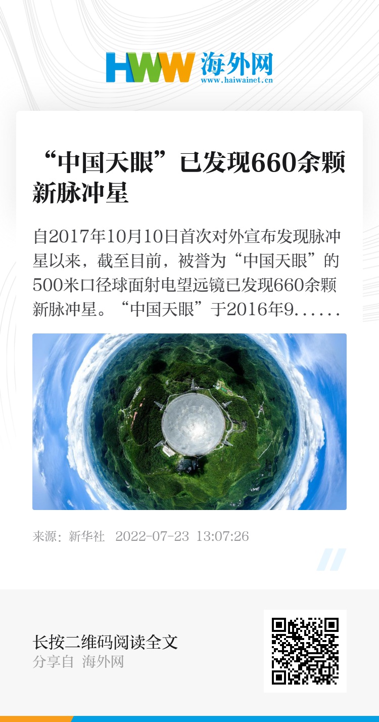 “中国天眼”已发现660余颗新脉冲星