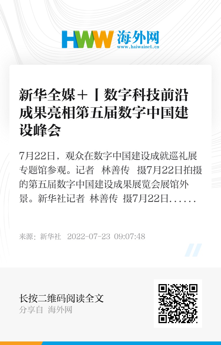 当日,第五届数字中国建设成果展览会在福州举行。作为第五届数字中国建设峰会的数字化发展成果展示窗口,本次展览有数字中国建设成就巡礼、数字化发展治理、数字政府等十二大版块,多角度交流我国数字化改革经验,全方位促进国际国内数字经济发展合作,高规格发布数字化创新产品和解决方案,立体化展现了数字中国建设成果。